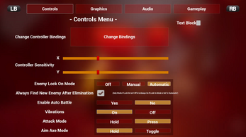 - Some players find using different inputs easier than others so I made options to either: toggle or hold the throw axe input and make the main attacking a press or hold, depending on the players situation they'll be able to play it how they'd like.